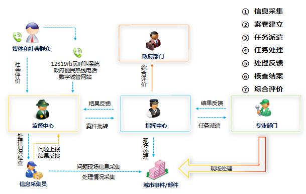 智慧城管系統(tǒng)利用萬米單元網(wǎng)格管理法和城市部件管理法相結(jié)合的方式,整合應(yīng)用多項數(shù)字城市技術(shù),利用智能移動終端,創(chuàng)新信息實時采集傳輸?shù)氖侄?,?chuàng)建城市管理監(jiān)督和執(zhí)行相互分離協(xié)作的管理體制。