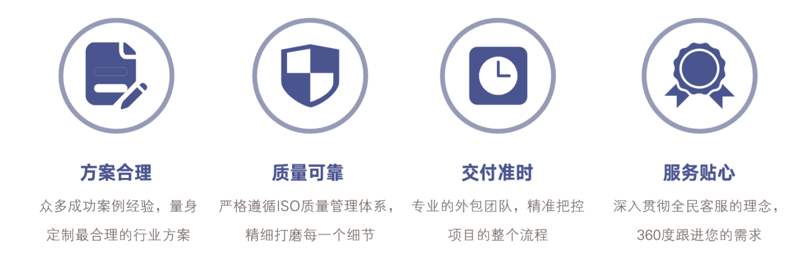 按照CMMI和 ISO9001標(biāo)準(zhǔn)來規(guī)范軟件開發(fā)過程和項(xiàng)目流程管理,同時(shí)兼顧敏捷開發(fā)模式,為客戶提供高效、穩(wěn)定、高質(zhì)量的軟件開發(fā)服務(wù),幫助客戶實(shí)現(xiàn)業(yè)務(wù)的快速增長。 公司擁有專業(yè)的設(shè)計(jì)、開發(fā)、測試、部署、管理和維護(hù)技術(shù)服務(wù)能力?;趦?yōu)異的項(xiàng)目管理、流程、工作方法和工具,同時(shí)導(dǎo)入業(yè)界先進(jìn)的新興技術(shù),為客戶提供安全高品質(zhì)的軟件外包服務(wù)。