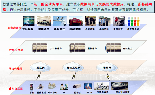再造城市與社會(huì)管理流程,在智慧社會(huì)服務(wù)管理系統(tǒng)平臺(tái)系統(tǒng)基礎(chǔ)上,擴(kuò)展應(yīng)用到城市、社會(huì)、綜治等綜合管理相關(guān)職能部門(mén),并通過(guò)統(tǒng)一采集、統(tǒng)一分撥和統(tǒng)一評(píng)價(jià)的建設(shè)思路,建立監(jiān)督有力、溝通快捷、分工明確、責(zé)任到位、反應(yīng)快速、處置及時(shí)、運(yùn)轉(zhuǎn)高效的城市與社會(huì)管理長(zhǎng)效機(jī)制。