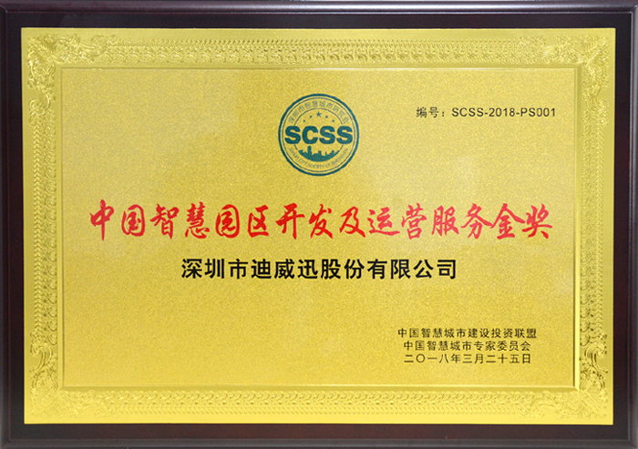 迪威迅榮獲“中國智慧園區(qū)開發(fā)及運營服務金獎”